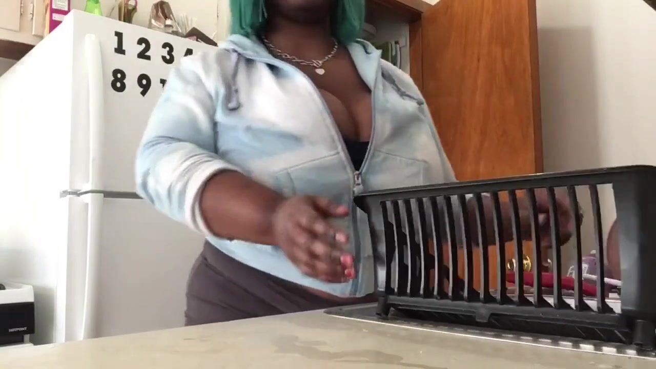 Watch this busty ebony MILF put on a show! After a long day at work, she's ready to relax and unwind, teasing and pleasing herself for your pleasure. Her curvy figure, big assets, and large areolas will leave you wanting more!