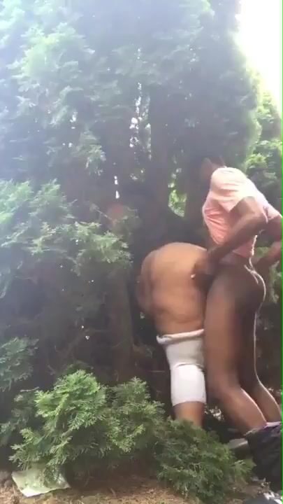 Bbw receiving standing doggy style outdoor